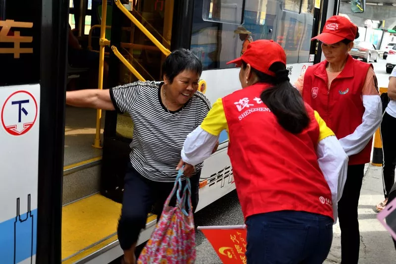深圳有很多公交站臺雖然面對人多車少的現(xiàn)實,但乘車人自覺排隊,按秩序上車,在客觀上加快了公交車周轉(zhuǎn)的速度。有著“文明城市”稱號的深圳,在最易擁擠的地方,體現(xiàn)出了文明。