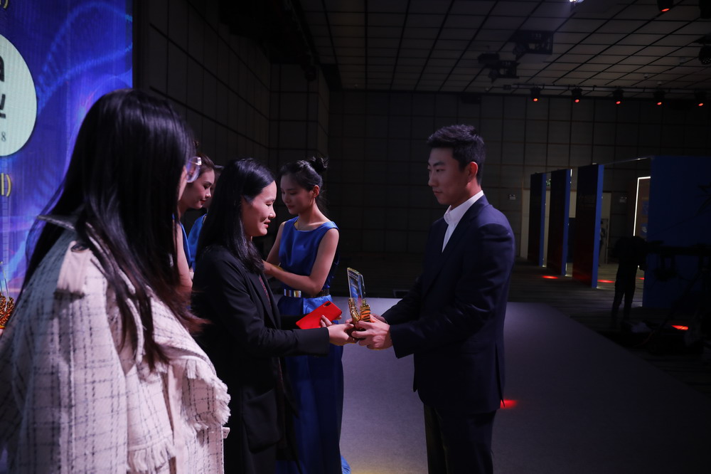 水貝珠寶集團副總裁盧森榮為“房地產(chǎn)行業(yè)最受網(wǎng)民歡迎品牌”頒獎。