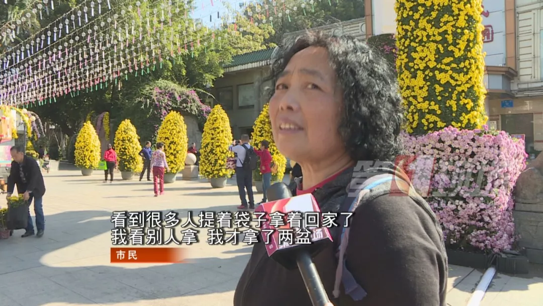 市民說,現場沒有人引導,弄得場面如同哄搶,殘花敗葉滿地,實在太不雅觀,有損形象,甚至有人推了一輛超市的推車,一下搬走了10多盆。