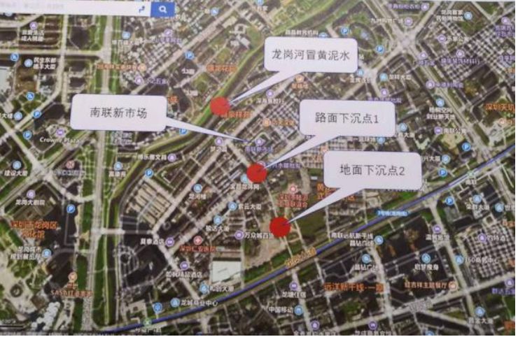12月5日,龍崗街道龍園路附近有三個(gè)地點(diǎn)分別出現(xiàn)局部地面沉降、河道黃泥水冒出等情況,經(jīng)專家初步判斷,主要因地下水文條件變化、溶巖坍塌等地質(zhì)變化引起。