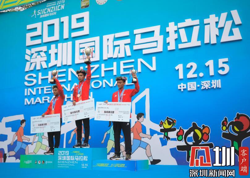 全程男子冠軍Tadese Tola Woldegeberel和第二名獲獎(jiǎng)?wù)邠肀А?/p>