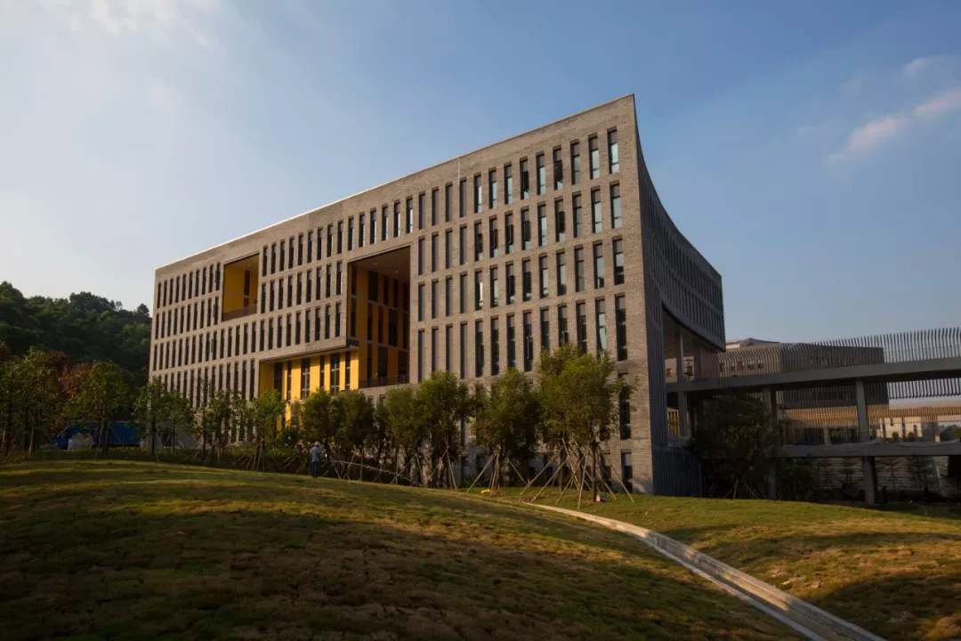 校園建筑群落依山就勢,外立面以“白墻”“格柵”為設(shè)計(jì)主要素,觀之簡潔舒展;公共空間流暢連續(xù),與自然環(huán)境融為一體。