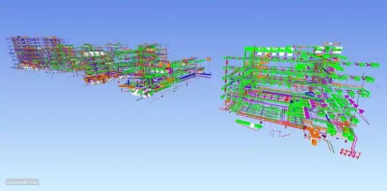 在施工準(zhǔn)備階段,優(yōu)化原設(shè)計(jì)圖紙,提前解決施工階段遇到的問題,實(shí)現(xiàn)BIM深化圖指導(dǎo)現(xiàn)場施工放樣及管道安裝,滿足規(guī)范及空間使用要求;施工實(shí)施階段,基于BIM深化模型輸出工程量清單,輔助材料管理人員物資采購管理,支架深化及輸出加工圖,推進(jìn)項(xiàng)目精細(xì)化管理。