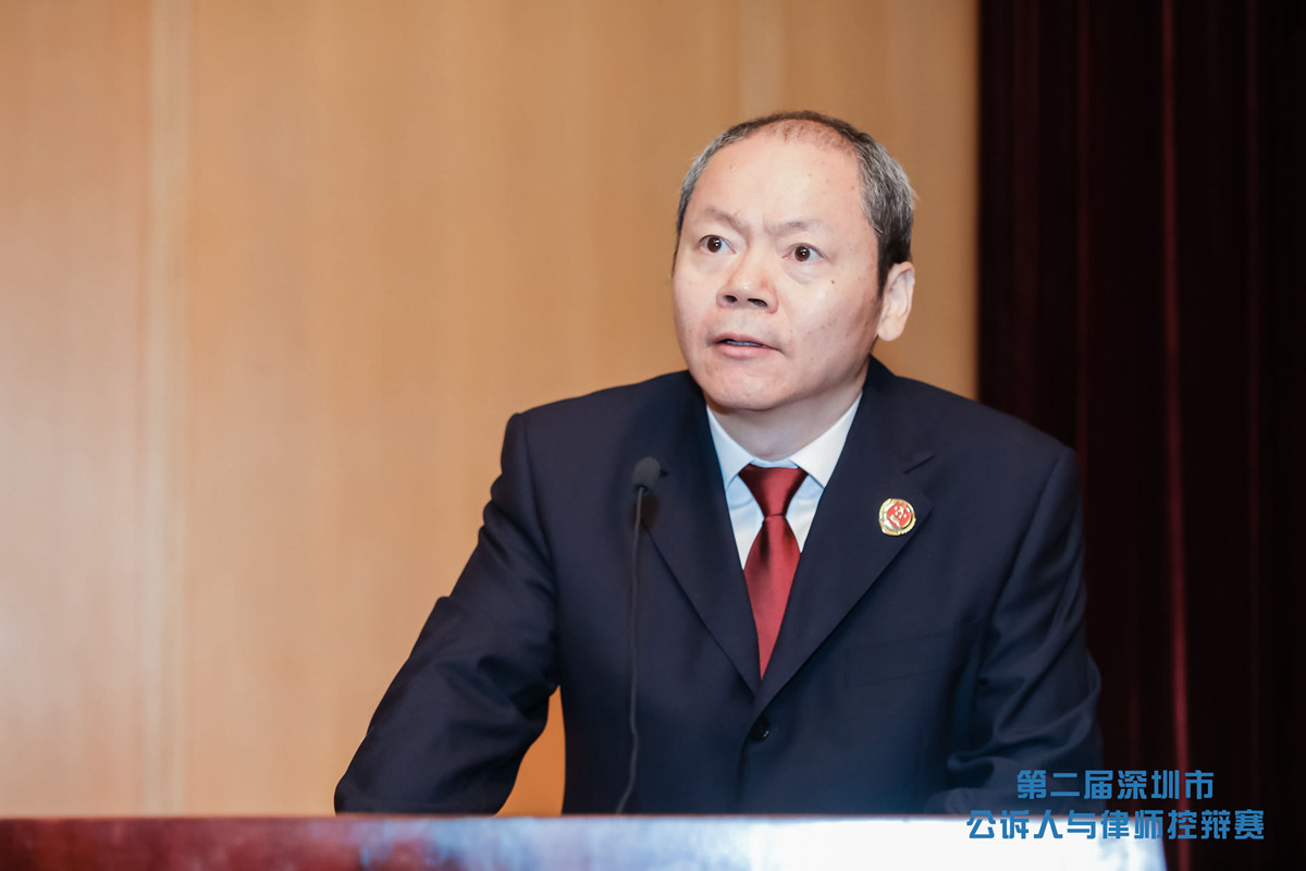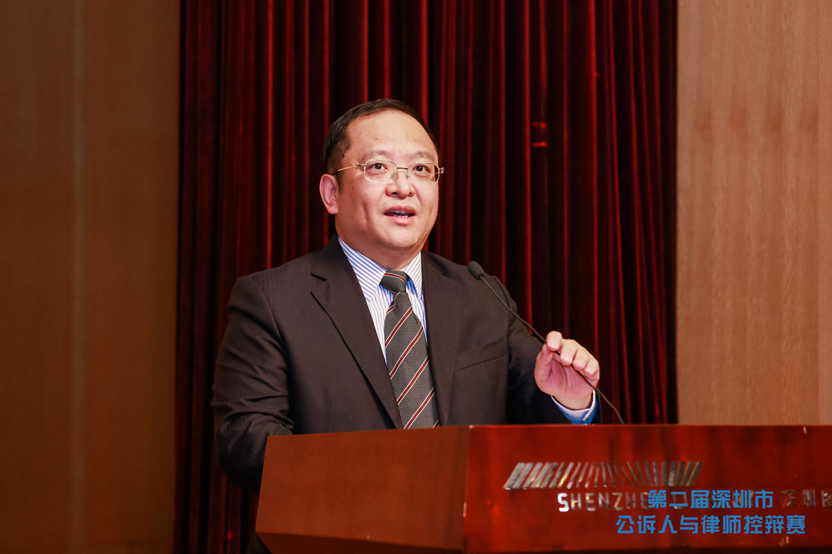 深圳市司法局局長蔣溪林在致辭中表示,今天的控辯大賽是深圳法律人的一個盛會,舉行控辯大賽是為了增進(jìn)法律職業(yè)共同體的相互了解,特別是在履職過程中,大家能夠站在彼此的立場上,共同為維護(hù)法律尊嚴(yán)和社會公平正義共同努力。