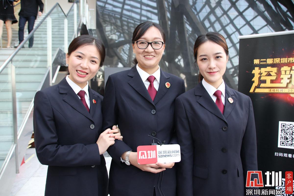 辯方第二隊(duì)接受深圳新聞網(wǎng)記者采訪,從左到右分別是鄧銳,李悅,劉思瑤三位律師。