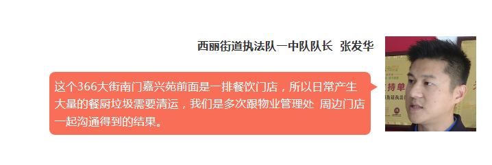 西麗執(zhí)法隊(duì)方面表示,無論是蔡某國自稱執(zhí)法隊(duì)工作人員,還是被投訴對(duì)象直接上門找市民,這樣的行為都明顯不符合規(guī)范。另外,對(duì)于市民投訴環(huán)境衛(wèi)生的問題,他們也正在想辦法進(jìn)行改進(jìn),并同時(shí)征詢附近商戶居民和物管的意見。