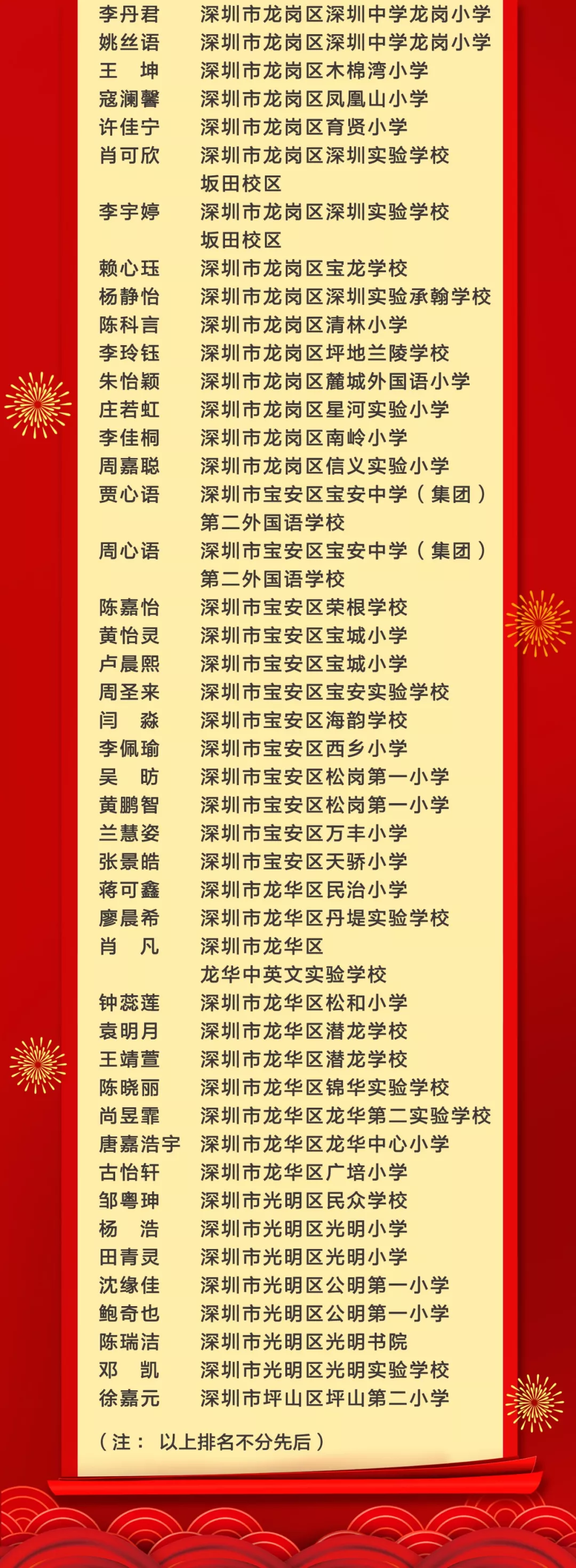 第十屆“深圳校園十佳文學少年”評比活動表彰名單