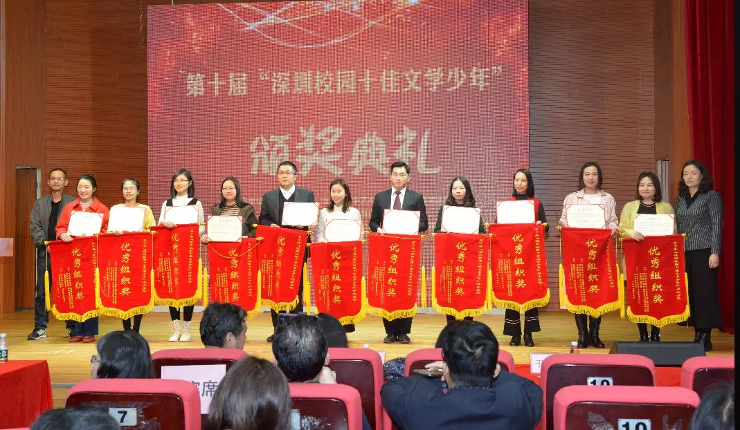 活動還揭曉了“十佳文學少年提名獎”“優(yōu)秀文學少年”“優(yōu)秀輔導老師獎”和“優(yōu)秀組織獎”的獲獎個人及學校。深圳市羅湖區(qū)錦田小學陳彥竹等10名學生獲評“十佳文學少年提名獎”,深圳小學劉子媛等80名學生獲評“優(yōu)秀文學少年”,深圳市福田區(qū)僑香外國語學校吳書華等89名教師榮獲“優(yōu)秀輔導老師獎”,深圳高級中學(北校區(qū))等35所學校獲得“優(yōu)秀組織獎”。