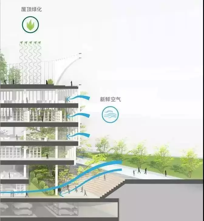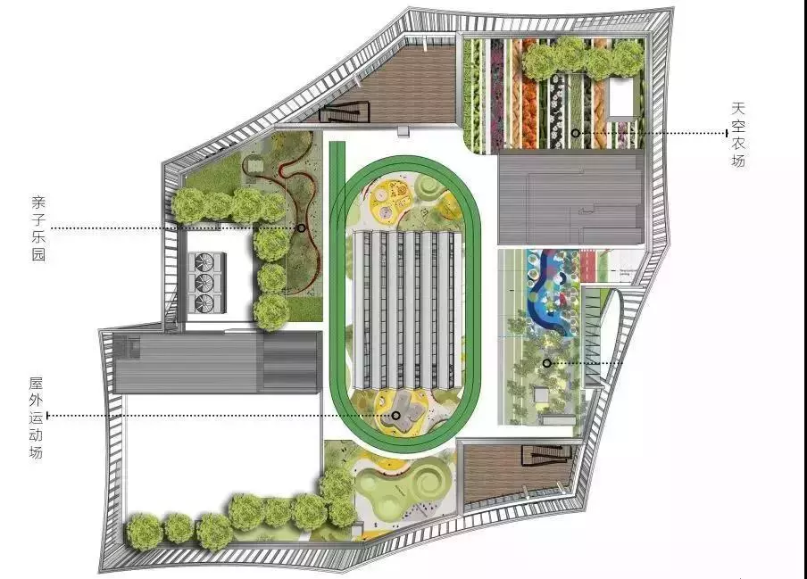 屋頂農(nóng)場(chǎng)充分利用空間,打造天空農(nóng)場(chǎng)、親子樂(lè)園、屋外運(yùn)動(dòng)場(chǎng)??罩械呐艿溃饰值耐寥溃瞎卟说慕鹕S收,讓自然在城市落地生根。小朋友們可以在其中,種植汗水,開(kāi)花結(jié)果,收獲自然的饋贈(zèng)。