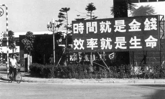 1982年,蛇口豎起“時(shí)間就是金錢,效率就是生命”的標(biāo)語牌。來源:深圳特區(qū)報(bào)江式高攝