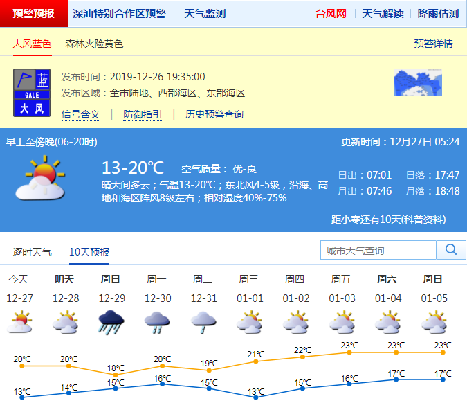 見圳客戶端·深圳新聞網(wǎng)2019年12月27日訊 昨日下午冷空氣已經(jīng)開始逐漸影響我市,風(fēng)力有所加大,沿海高地最大陣風(fēng)已達(dá)到6-7級(jí)。市氣象臺(tái)預(yù)測(cè),受冷空氣+臺(tái)風(fēng)聯(lián)合影響,29-30日我市將有一次大雨到暴雨降水過(guò)程。