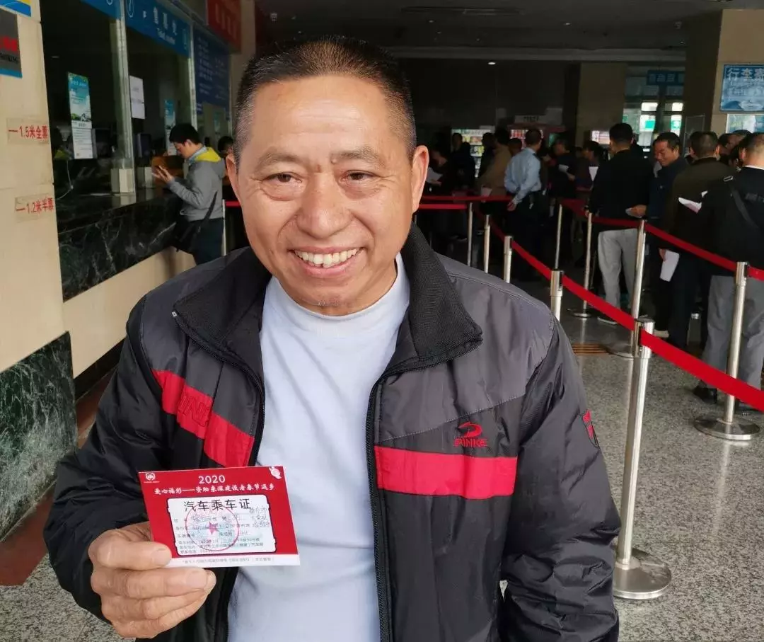 來自四川省南充市的魏先生一大早便來到取票現(xiàn)場,成功取到票的他,滿臉掛著笑容。據(jù)魏先生介紹,1992年他來深圳務(wù)工,平時靠打散工,收入不高,上次回家已經(jīng)是6年前了,他無比想念家里的老母親和三個小孩,無奈每年春節(jié)都搶不到票,今年,在老鄉(xiāng)的告知下得知深圳福彩這個公益活動,總算是買到了回家的車票?!拔也欢W(wǎng)絡(luò)買票,老鄉(xiāng)拿我的手機幫忙操作,今年終于可以回家了,很開心!而且汽車直接送到家附近,不需要轉(zhuǎn)車,很方便,感謝福彩!”