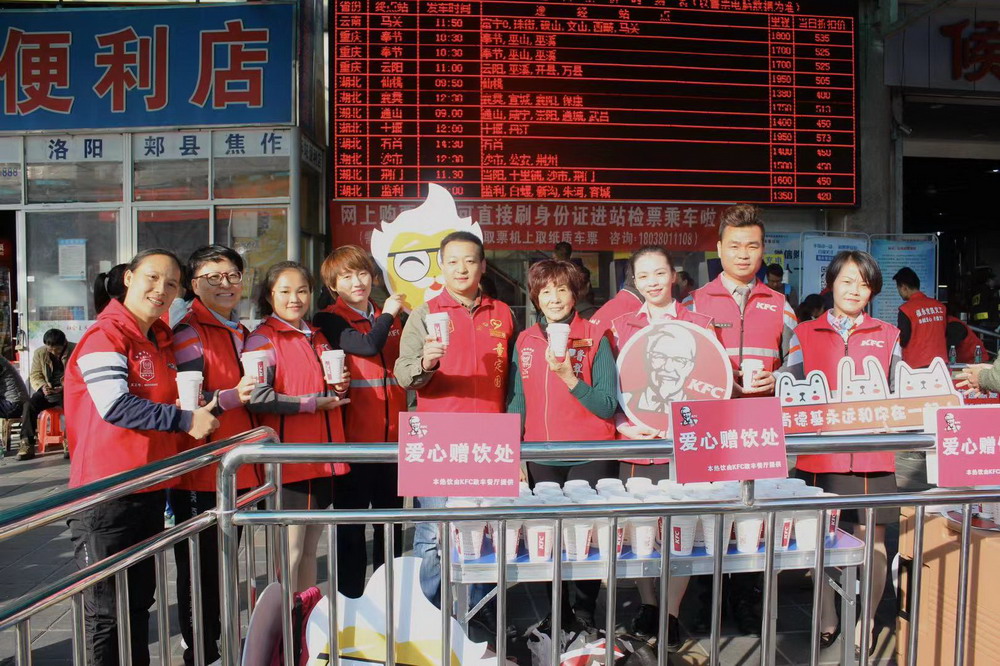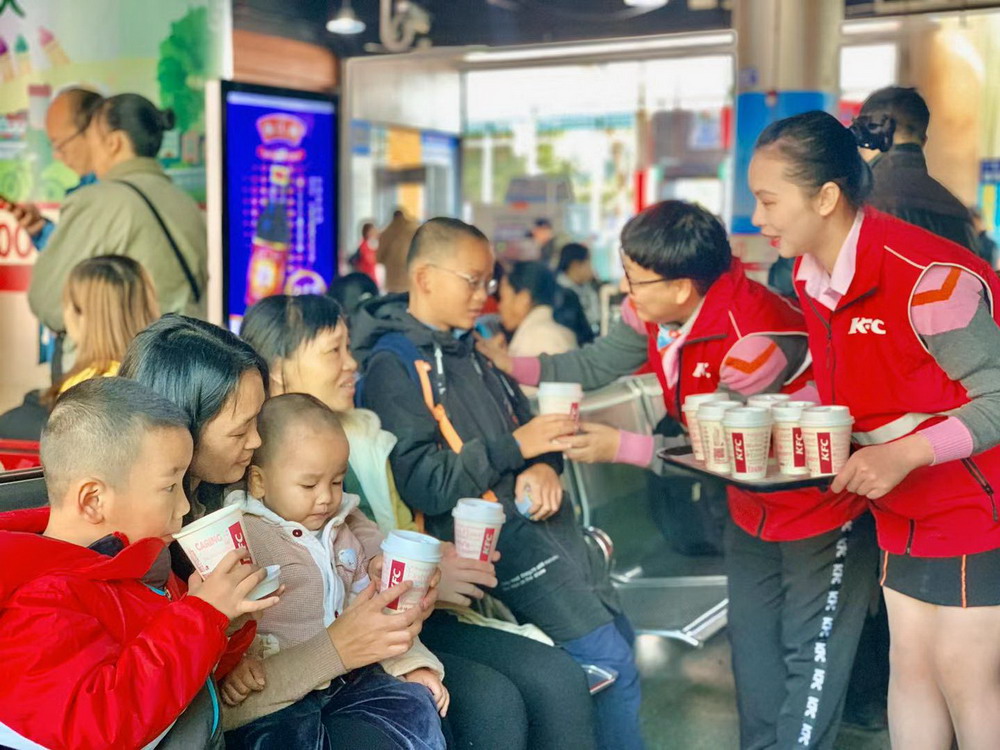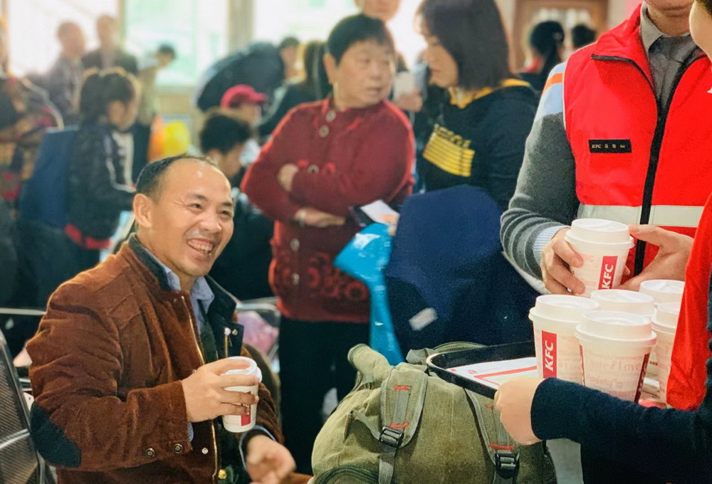 春節(jié)臨近,深圳福永汽車站迎來旅客返鄉(xiāng)的高峰。1月12日,深圳肯德基聯(lián)合福永義工聯(lián)為返鄉(xiāng)的建設(shè)者贈送1000杯愛心熱飲,將溫暖與愛帶回家。據(jù)悉,這是深圳肯德基第三年參與春運愛心贈飲活動。