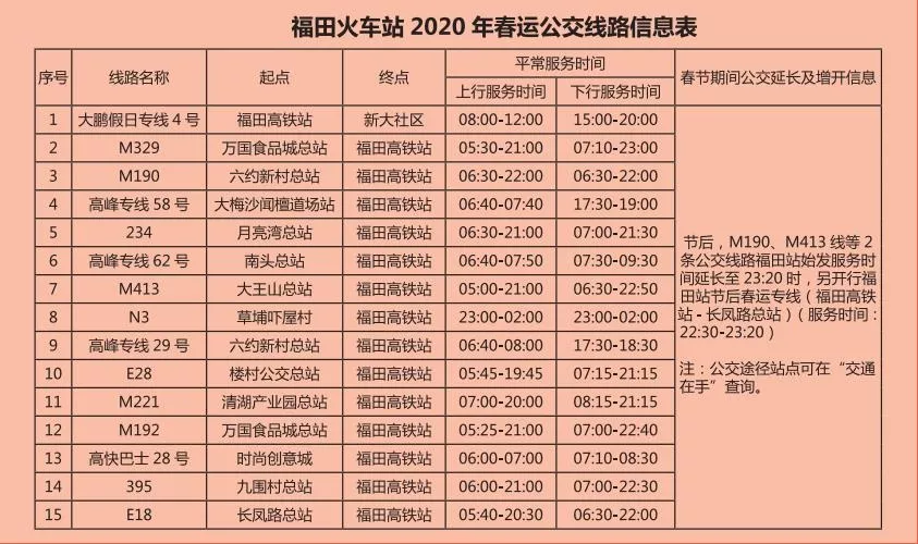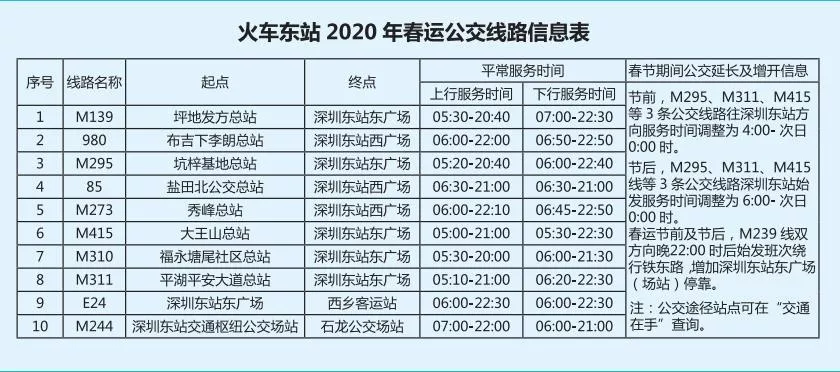 見圳客戶端·深圳新聞網(wǎng)2020年1月20日訊 又將迎來離深高峰,為方便大伙趕高鐵火車,深圳的公交地鐵都開啟最強(qiáng)加班模式,延長(zhǎng)服務(wù)時(shí)間。很多小伙伴就很關(guān)心,途經(jīng)各大火車站的公交線有哪些?運(yùn)營(yíng)的時(shí)間是幾點(diǎn)?