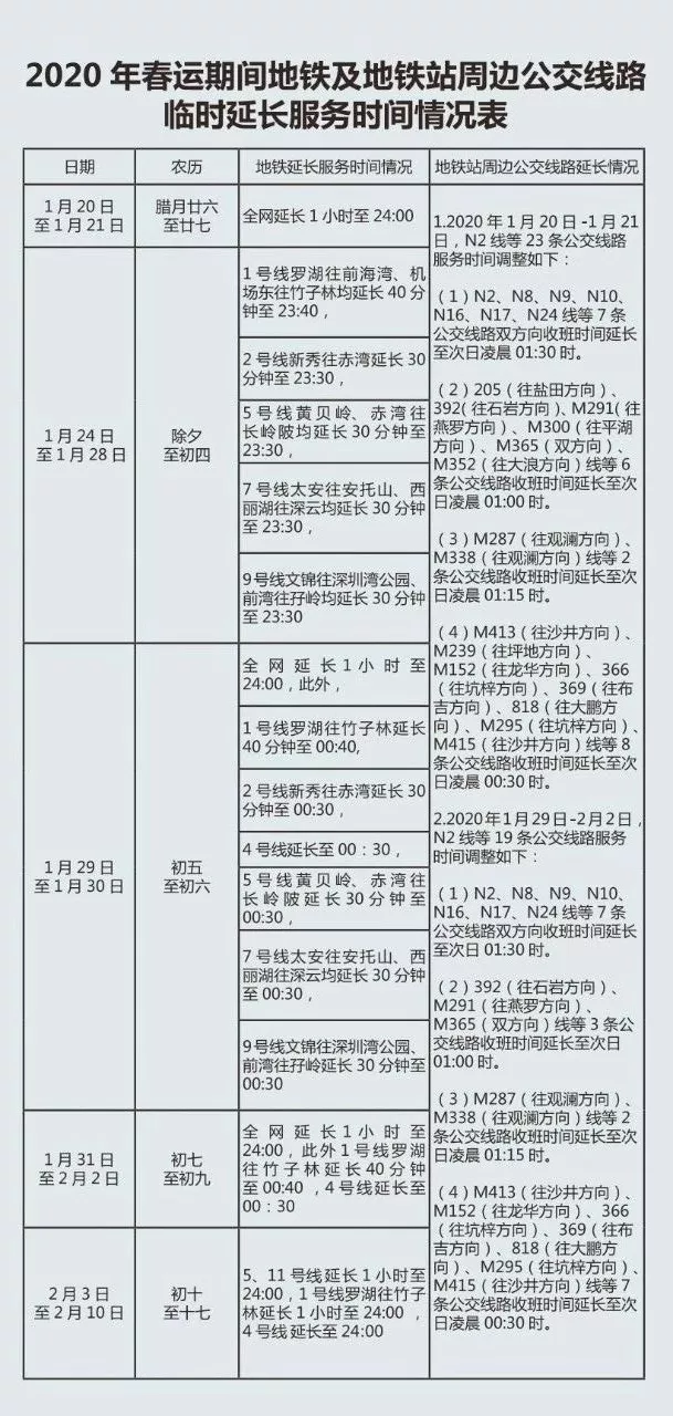 最后呢,再給大家發(fā)一張圖,深圳地鐵全網(wǎng)及周邊公交線延時(shí)安排,請(qǐng)收藏好哦!
