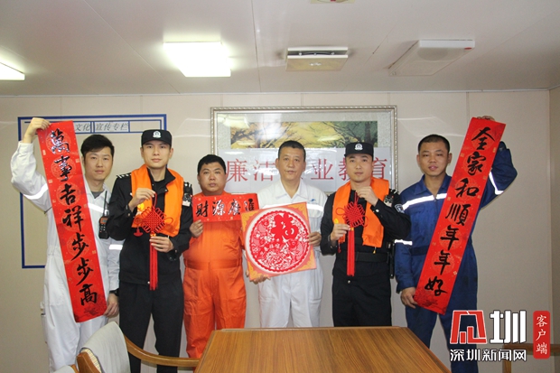 “新年好,祝你新春快樂!”1月19日,汕尾邊檢站民警帶著中國結(jié)、對聯(lián)登上候檢船舶,為即將遠航印度尼西亞的22名船員致以新春祝福,并與船員一起布置春節(jié)裝飾品。