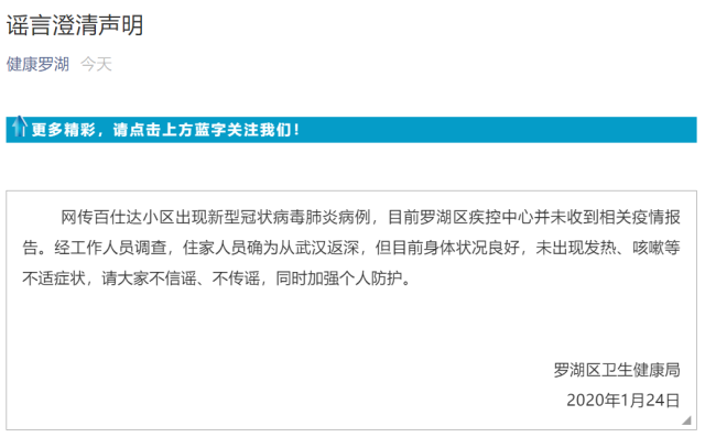 官方辟謠:假的!網(wǎng)傳羅湖一小區(qū)出現(xiàn)新型冠狀病毒肺炎病例
