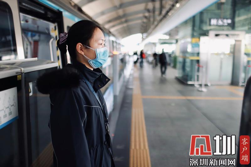 深圳地鐵3號(hào)線,工作人員戴著口罩進(jìn)行值班。