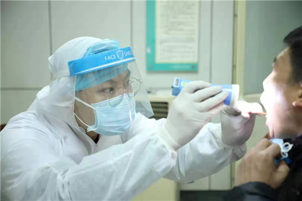 消化內(nèi)科苑仁杰醫(yī)生第一時(shí)間請(qǐng)纓到發(fā)診門(mén)診上班,這是他正在為發(fā)熱病人診治