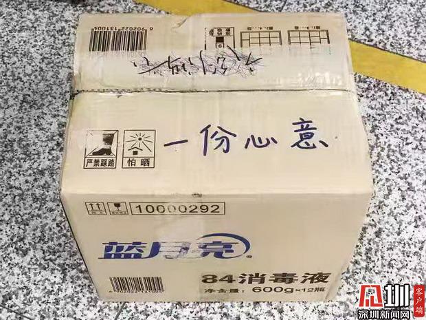 2020年1月30日晚20:55分,深圳地鐵梅村站工作人員正在安檢口執(zhí)勤時(shí),一名戴著口罩的男子走進(jìn)來(lái),放下一個(gè)箱子便轉(zhuǎn)身離去。工作人員發(fā)現(xiàn)箱子上寫著“一份心意”四個(gè)字,打開發(fā)現(xiàn)箱內(nèi)有12瓶84消毒液,正欲上前感謝時(shí),男子已匆匆離開,只留下了一個(gè)背影。