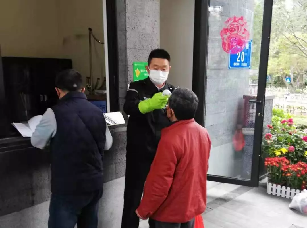對車輛和人員出入取消刷卡自動開閘,改為手動出入開閘,禁止外來人員出入;門口、車道崗配備測溫儀,對所有進(jìn)出小區(qū)人員進(jìn)行體溫測量,并做好登記。