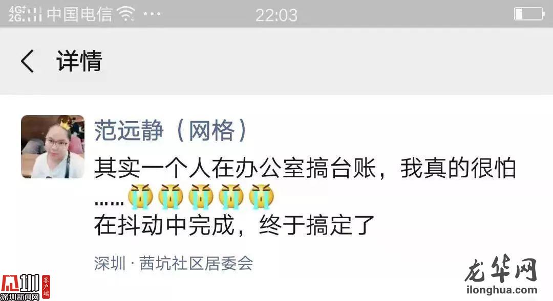 龍華區(qū)福城街道茜坑社區(qū)網(wǎng)格站資料員范遠(yuǎn)靜被凍得瑟瑟發(fā)抖,但停不下手里的活,不斷地整理、更新手中的湖北籍,特別是武漢籍社區(qū)人員離、返深信息,每天將前線網(wǎng)格員們辛苦采集到信息制作成臺(tái)賬,以保證在第二天早上六點(diǎn)前能上報(bào)給街道,用心做好社區(qū)疫情防控幕后工作,保障社區(qū)居民安全。