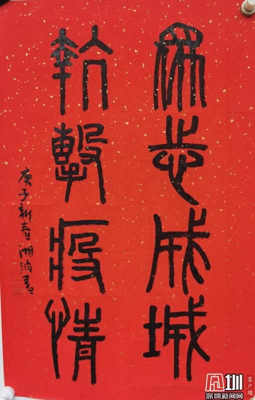 流暢的線條,簡練的筆刃,一個個一線醫(yī)務人員奮戰(zhàn)疫情的場景躍然紙人,他們?nèi)蔽溲b身著防護服,或手持醫(yī)療器械,或為病人診治,或記錄檢測數(shù)據(jù)……一幕幕緊張的工作畫面浮現(xiàn)在眼前。記者看到,這些畫作上均落款"抗疫前線最可敬的人"。此外,另一幅紅色大紙書寫的篆字書法作品書寫的內(nèi)容為:眾志成城,抗擊疫情。