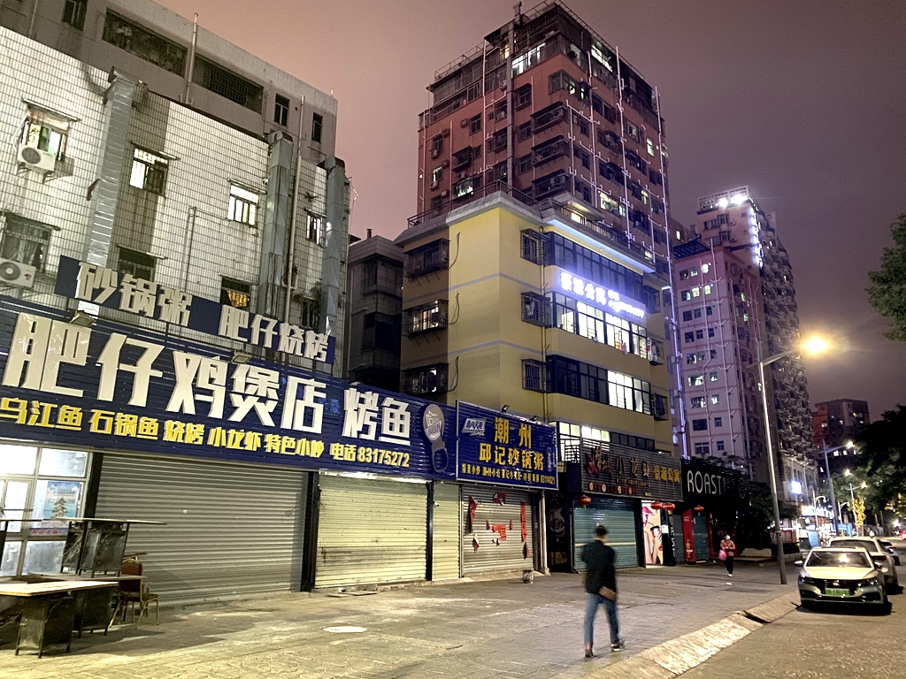 治愈了無(wú)數(shù)深圳人味蕾的梅林美食一條街行人稀少,不少店鋪大門(mén)緊閉