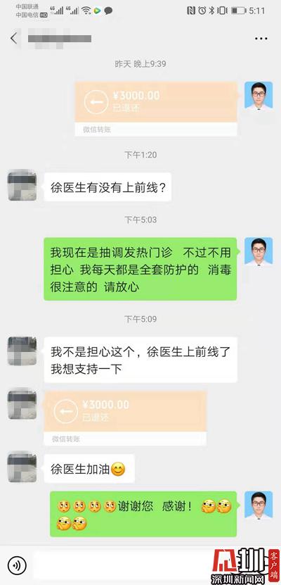 2日上午,寶安中醫(yī)院(集團)隔離病房工作的徐醫(yī)生,遇到了令他十分感動的事。他通過微信向房東交房租,房東問他是不是在防控前線工作,徐醫(yī)生以為房東怕傳染而嫌棄他,連忙向房東解釋自己做好了防護消毒,不用擔心,沒想到房東直接把房租退了回去,表示要支持徐醫(yī)生在前線工作,真是暖心?。?br/>
