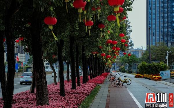 路旁的樹(shù)上還掛著紅彤彤的燈籠。