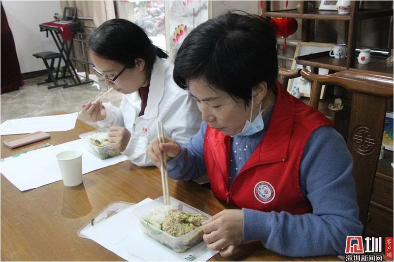 中午12點,吳麗回到社區(qū)工作站用餐。
