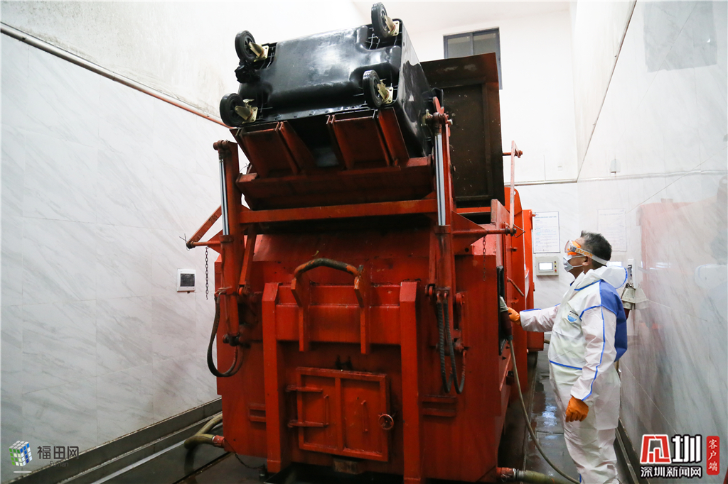 現(xiàn)代化城市生活固然便捷,但是也制造巨量的生活垃圾。垃圾清運(yùn)人員凌晨3點(diǎn)半起床后開始準(zhǔn)備一天的工作。這段時(shí)間,轉(zhuǎn)運(yùn)站配置1:250的高濃度消毒液,一桶消毒液夠用一個(gè)垃圾轉(zhuǎn)運(yùn)站。記者看到,電動垃圾轉(zhuǎn)運(yùn)車上的四個(gè)環(huán)衛(wèi)消殺工作人員穿著厚厚的白藍(lán)色隔離服,全副武裝迎接來自轄區(qū)源源不斷運(yùn)過來的垃圾桶,隨著垃圾轉(zhuǎn)運(yùn)車后滋滋作響的電流聲,車后的平板放下來了,一桶桶垃圾平穩(wěn)有序的拽拉進(jìn)垃圾轉(zhuǎn)運(yùn)站進(jìn)行壓縮,因工作服的關(guān)系,工作人員眼罩上經(jīng)常被一層厚厚的水霧糊上,工作期間會把手套摘除后,從手心處甩出一把把汗。
