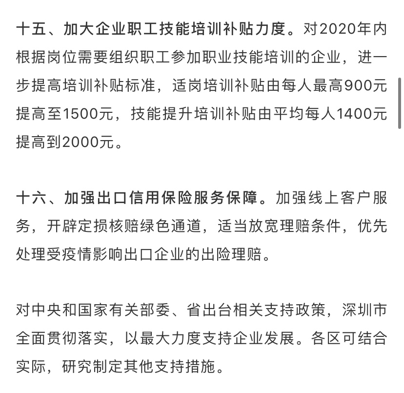 據(jù)了解,為深入貫徹落實(shí)習(xí)近平總書記關(guān)于堅(jiān)決打贏疫情防控阻擊戰(zhàn)的重要指示精神,全面落實(shí)黨中央國務(wù)院和省委省政府關(guān)于做好新型冠狀病毒感染的肺炎疫情防控工作的決策部署,在做好防控工作的同時(shí)統(tǒng)籌抓好改革發(fā)展穩(wěn)定各項(xiàng)工作,支持企業(yè)共渡難關(guān),保障城市平穩(wěn)運(yùn)行和經(jīng)濟(jì)穩(wěn)定增長,深圳市政府特制定該工作措施。