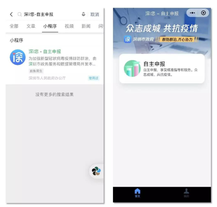 1、微信搜索欄:在微信搜索欄直接搜索“深i您-自主申報(bào)”,按照頁(yè)面提示如實(shí)填寫相關(guān)信息即可;