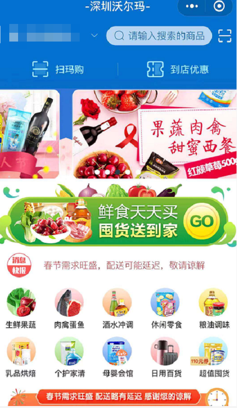 商品情況:除了生鮮日用品,母嬰用品、廚具電器都有。但春節(jié)需求旺盛,需提前搶購,可先看看自己所在地區(qū)是否提供配送。