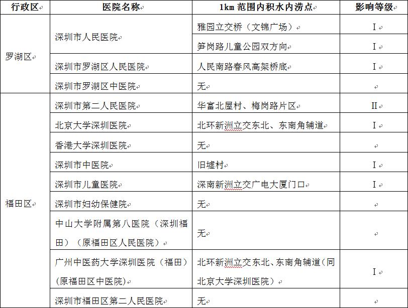 根據(jù)2019年度全市積水內(nèi)澇報送情況,深圳市水務(wù)局初步梳理出全市49家發(fā)熱門診(含1家新型冠狀病毒感染肺炎定點救治醫(yī)院)周邊積水內(nèi)澇點29處,并結(jié)合積水內(nèi)澇嚴(yán)重情況分為Ⅰ、Ⅱ、Ⅲ級,詳見附件1《全市發(fā)熱門診及定點救治醫(yī)院周邊積水內(nèi)澇點初步梳理情況》。