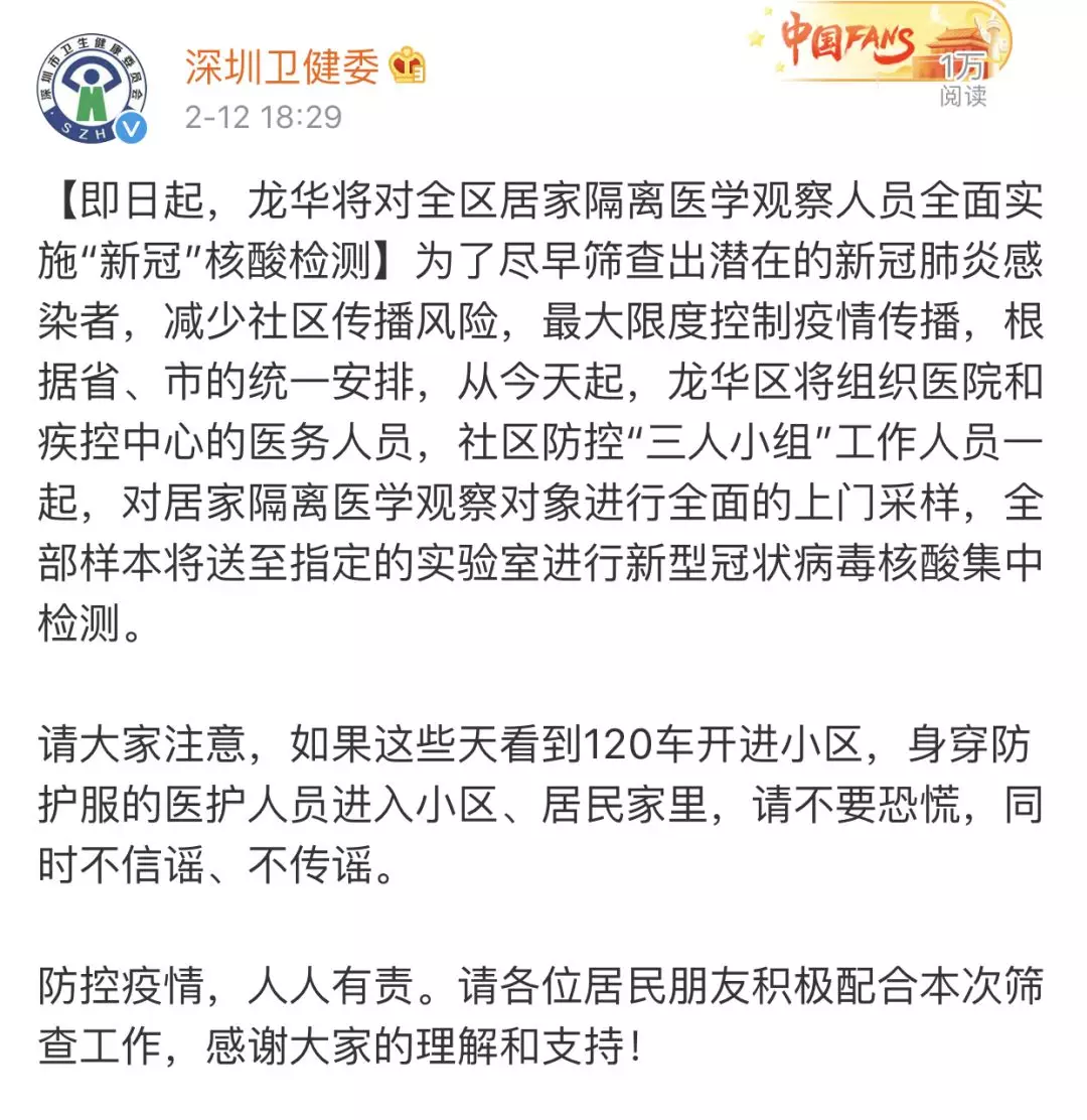 徹底“排雷”!深圳免費(fèi)為所有居家隔離者檢測“新冠”病毒核酸