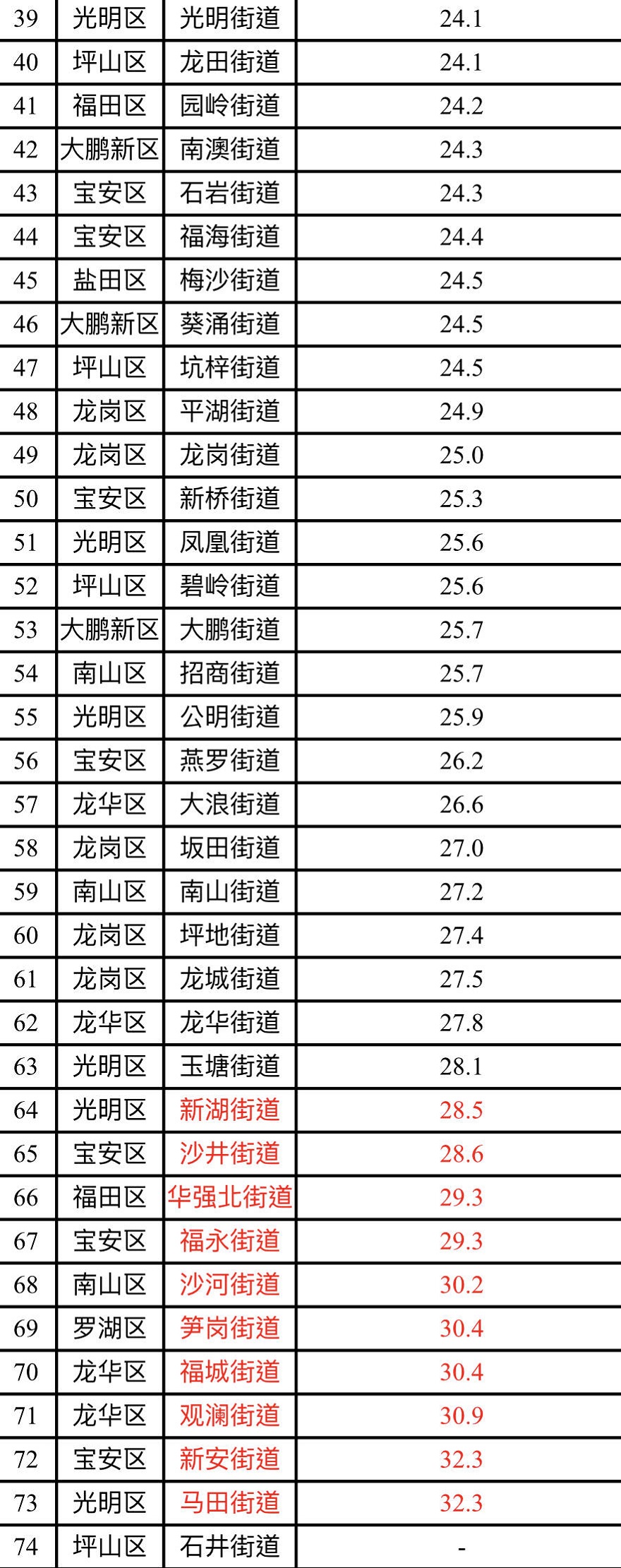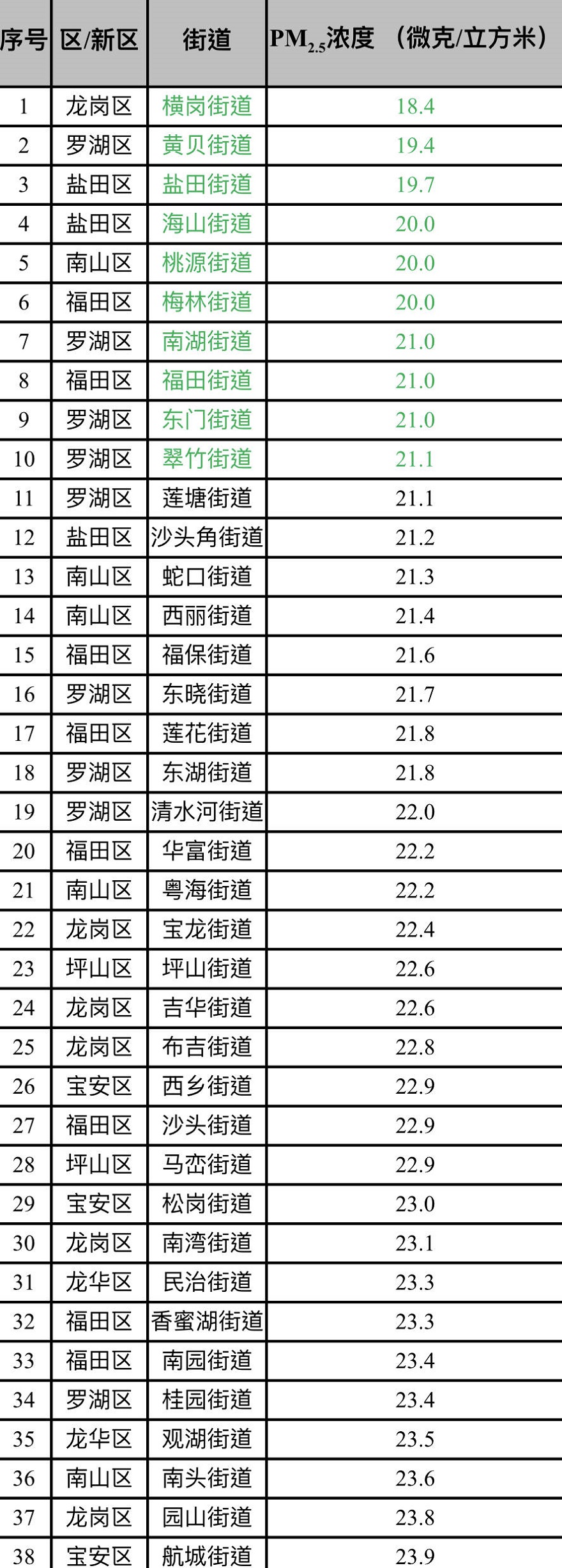 見(jiàn)圳客戶端·深圳新聞網(wǎng)2020年2月12日訊(見(jiàn)圳客戶端、深圳新聞網(wǎng)記者 陳婕)2020年1月,深圳市74個(gè)街道PM2.5濃度在18.4-32.3微克/立方米之間,均值為24.3微克/立方米。排名前十的是:橫崗、黃貝、鹽田、海山、桃源、梅林、南湖、福田、東門和翠竹等街道,排名倒數(shù)前十的是:馬田、新安、觀瀾、福城、筍崗、沙河、福永、華強(qiáng)北、沙井和新湖等街道。