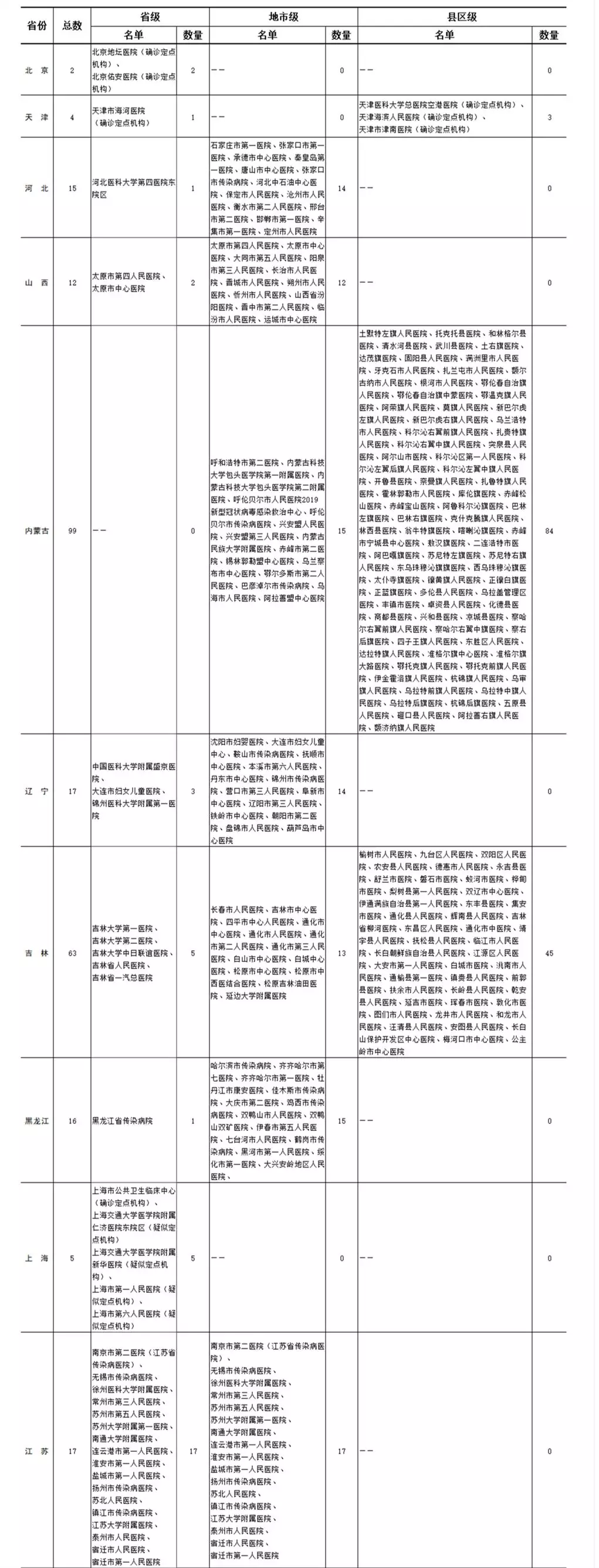 各省(區(qū)、市)新型冠狀病毒感染疑似或確診孕產(chǎn)婦產(chǎn)檢和住院分娩定點醫(yī)院(截至2020年2月11日)