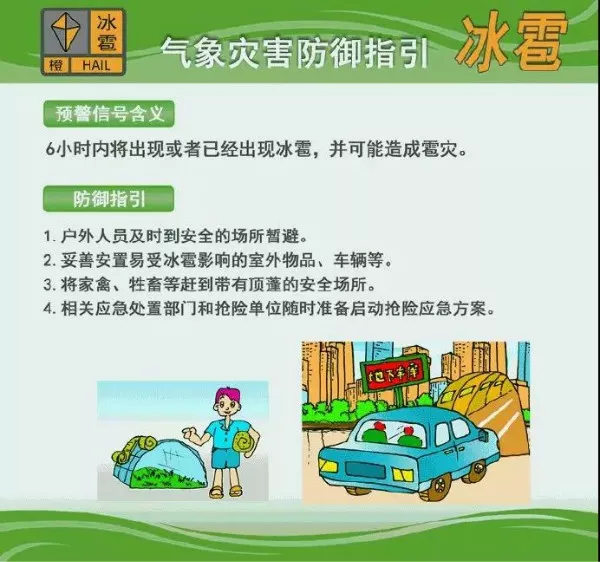 各市縣先后發(fā)布了冰雹橙色預(yù)警,冰雹橙色預(yù)警信號(hào)表示6小時(shí)內(nèi)將出現(xiàn)或者已經(jīng)出現(xiàn)冰雹,并可能造成雹災(zāi)。