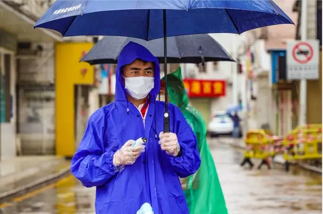 除了他們,還有很多人也冒雨奮戰(zhàn)在抗疫第一線:防控檢疫員、社區(qū)網(wǎng)格員、義工、快遞小哥等等