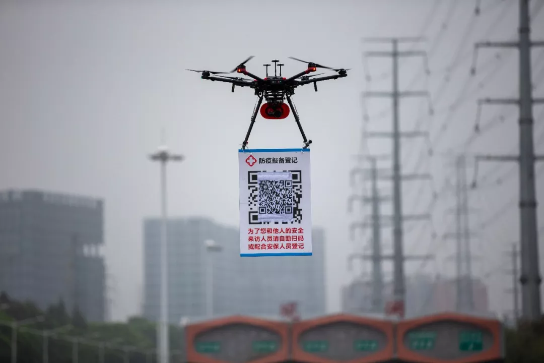 2月11日,在G94高速深圳觀瀾收費處,深圳龍華機訓大隊無人機飛行隊的民警操作懸掛有申報二維碼的無人機在候檢的車輛間飛行。