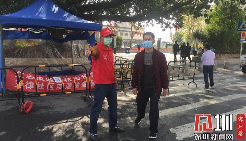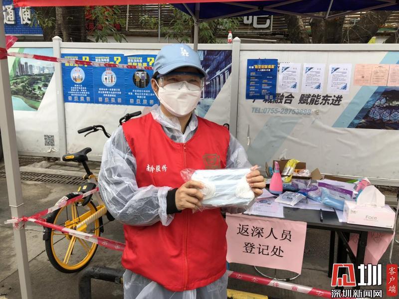 南嶺南路崗亭是南嶺村社區(qū)最大的出入口,人流、車流量大,隨著近幾日工廠企業(yè)開始陸續(xù)復工,每天出入的返深居民和車輛都絡繹不絕。羅秀蘭和李君海從2月3日開始,就“錯時”守在這個崗位上?!艾F(xiàn)在返程的人越來越多,崗亭晚上也要有志愿者。”李君海說,他白天工作沒有時間,就報名參加晚上的值守。