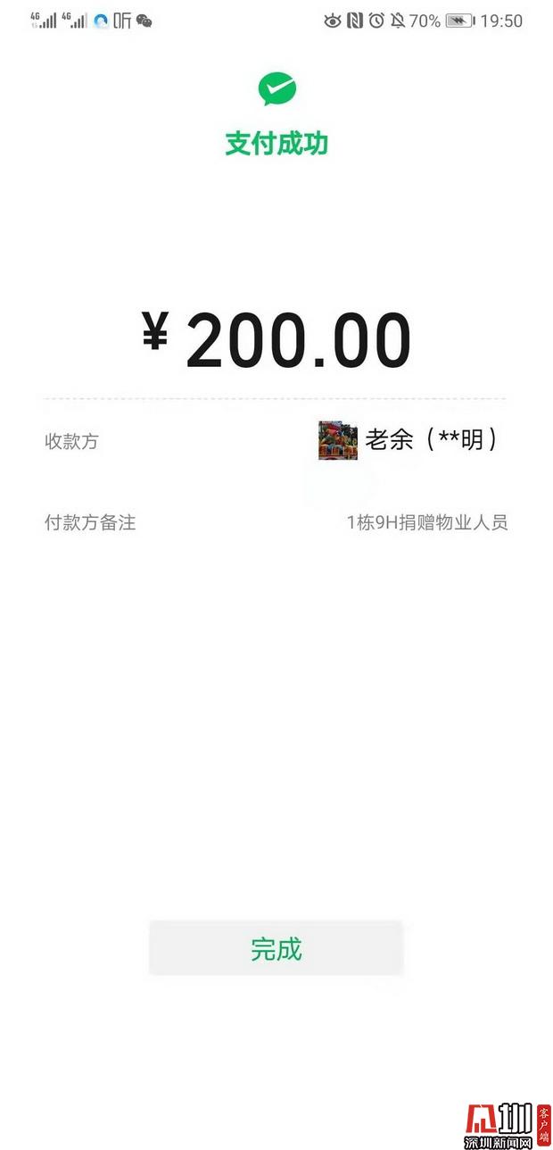 50元,200元,300元……2月13日晚,位于福田區(qū)的金海燕花園的業(yè)主們也加入了捐款“大軍”。有業(yè)主還提議,將所有捐款以獎(jiǎng)金形式,平均發(fā)放給物業(yè)工作人員,以此表達(dá)對(duì)物業(yè)工作人員辛勤工作的肯定和鼓勵(lì)?!叭绻杏嗔Φ泥従?,再捐一點(diǎn)急用物資也可以。”