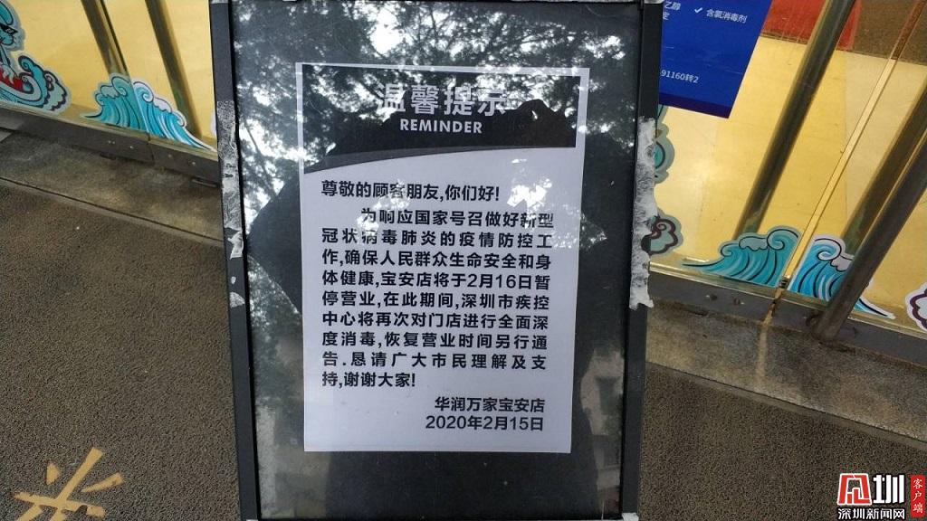 華潤萬家寶安店門口張貼的溫馨提示。