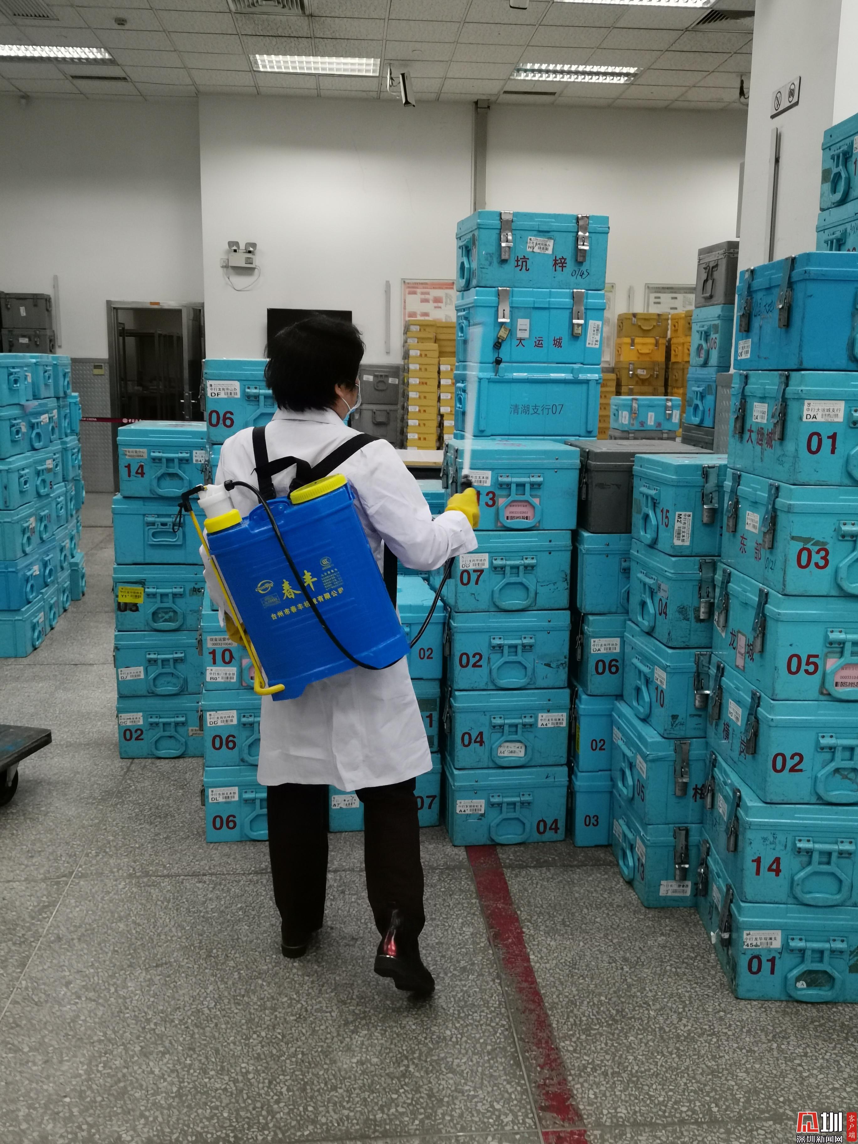 中國銀行深圳市分行對現(xiàn)金尾箱進(jìn)行消毒