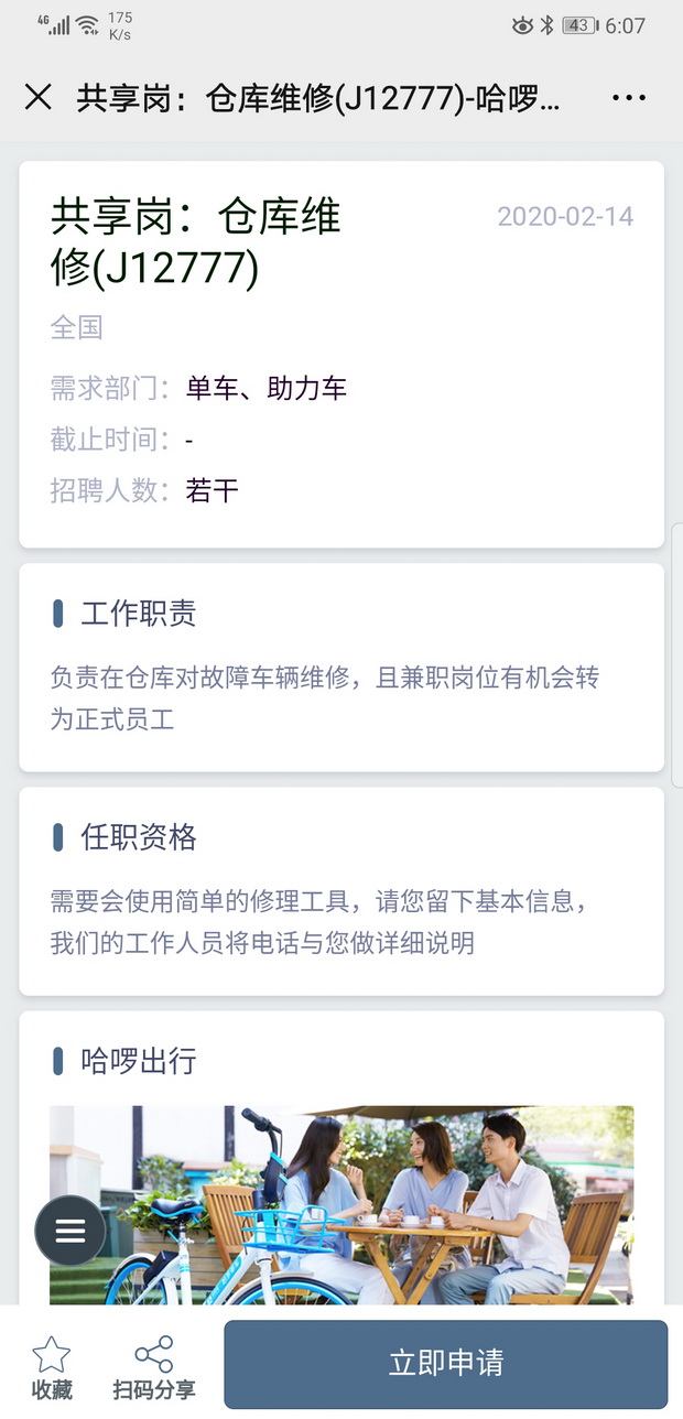 哈啰提供8000個崗位供社會報名 服務復工安全出行