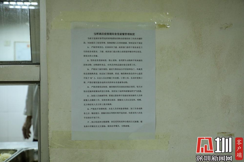 和大部分酒店選擇關(guān)閉餐廳不同,寶暉酒店員工食堂仍然開放,但是制定了嚴(yán)格的就餐制度,實(shí)行分時(shí)段就餐、由廚師統(tǒng)一打飯菜、按統(tǒng)一朝向間隔就坐等規(guī)定。