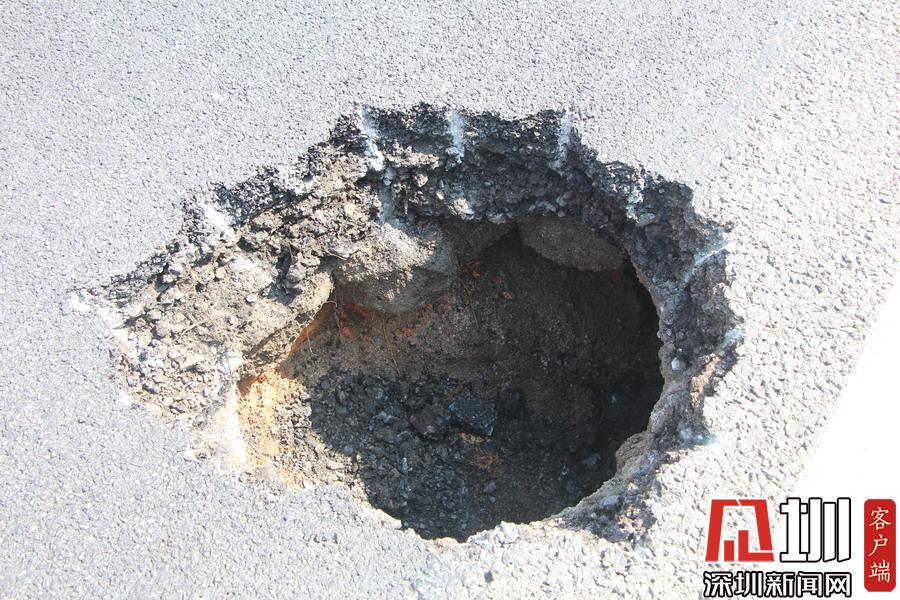 深圳市民廣場前一輔路驚現(xiàn)直徑一米坑 有關部門:正加緊修復