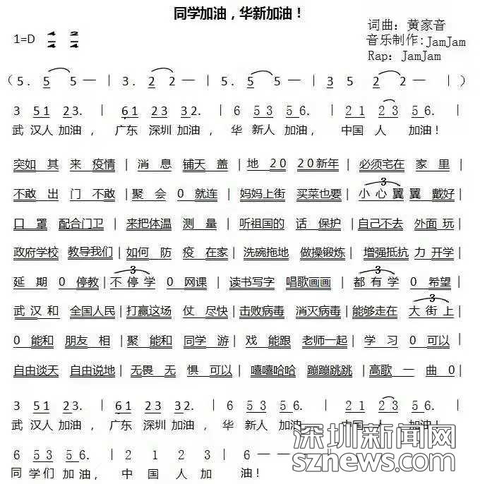 學(xué)生謝錦曦說(shuō):“我很開(kāi)心我能作為學(xué)生代表歌唱黃老師專(zhuān)門(mén)為武漢,為中國(guó),為我們?nèi)A新寫(xiě)的歌曲。開(kāi)學(xué)典禮的時(shí)候,當(dāng)我聽(tīng)到我為武漢的加油聲從視頻里傳到了每個(gè)華新人的耳朵里、心里,我想著他們跟我一起為武漢加油,為中國(guó)加油,心里就非常開(kāi)心。”